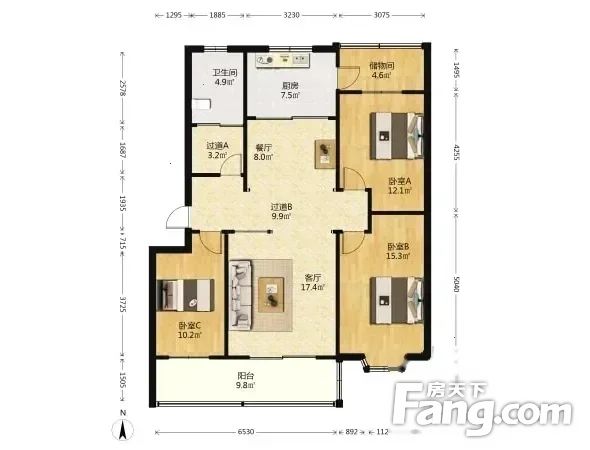 1.户型:正规3室2厅,南北朝向,户型方正,布局合理,采光通风效果很好,非常敞亮 是小区中罕见的户型